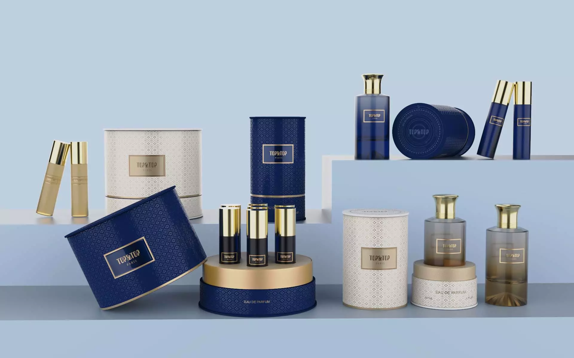 At the heart of every design is the consistent application of branding. Just as the “TOP&TOP” logo seamlessly ties together each product and package in the display, M&M Printing ensures that your brand identity remains cohesive and impactful across all touchpoints. From custom-printed boxes to bespoke perfume bottles, we specialize in delivering packaging that not only stands out on the shelf but also strengthens brand recognition and loyalty.